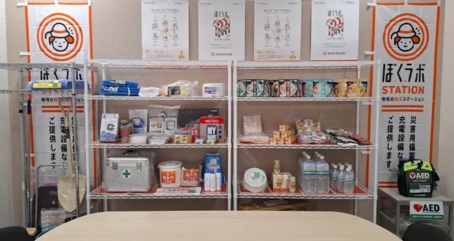 | ぼ・く・ラボステーション | 大東建託 | 被災時に3日間、約150人がしのげるように食料・水・使い捨て災害用トイレを常備する他、社用車(HV車)を活用し、無償で電力供給を行う | 58拠点(81拠点) |